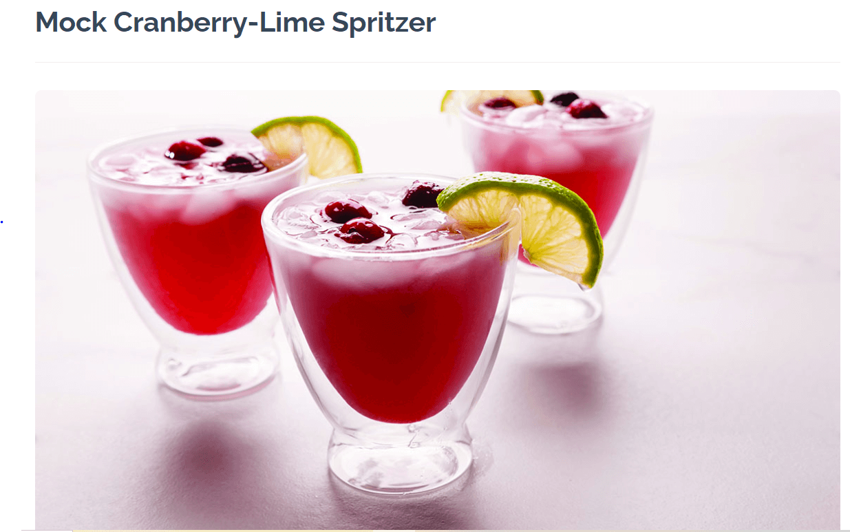 Specialty drinks are an easy and delicious way to get into the holiday spirit. This mock cranberry and lime spritzer is a festive, fun, and delicious addition to complement any meal during the holidays.
